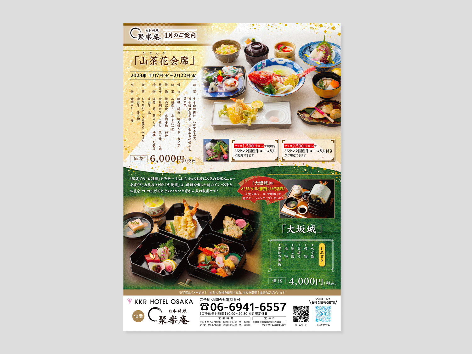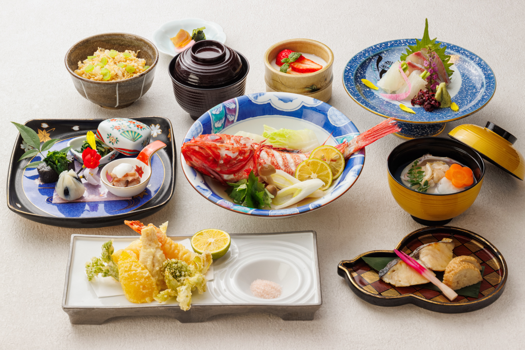 大阪城の四季折々の景色と夜景を望む天空のレストラン。日本料理 聚楽庵様の料理撮影いたしました。