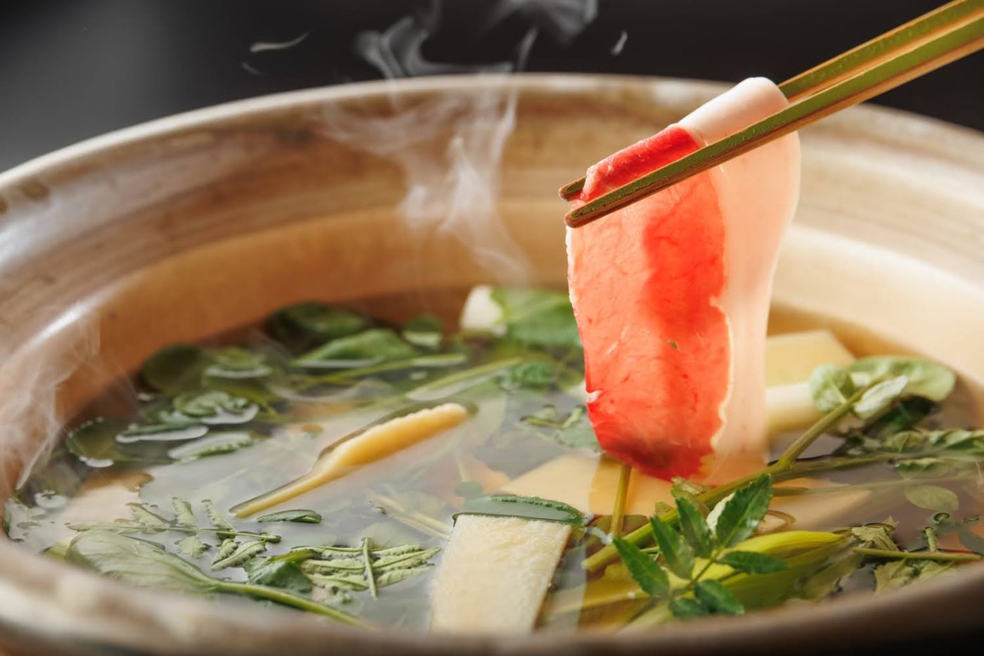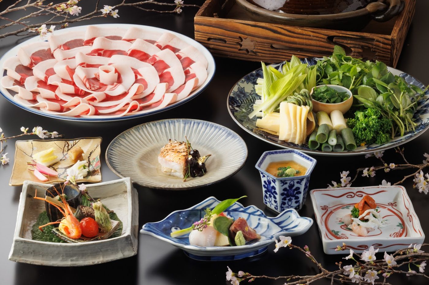 ぼたん鍋や、丹波篠山の食材を贅沢に使用した会席など伝統的なコース集合料理撮影から