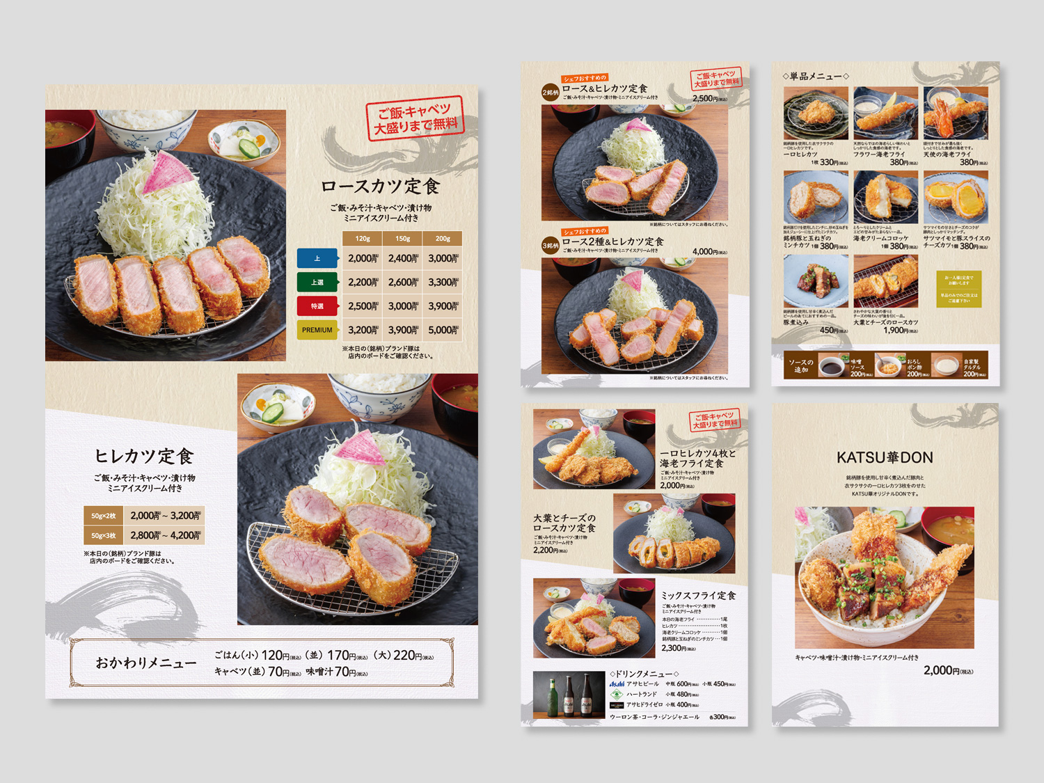 大阪市中央区堺筋本町にあるとんかつ専門店「とんかつKATSU 華」様、撮影からメニューブック制作まで担当させていただきました。